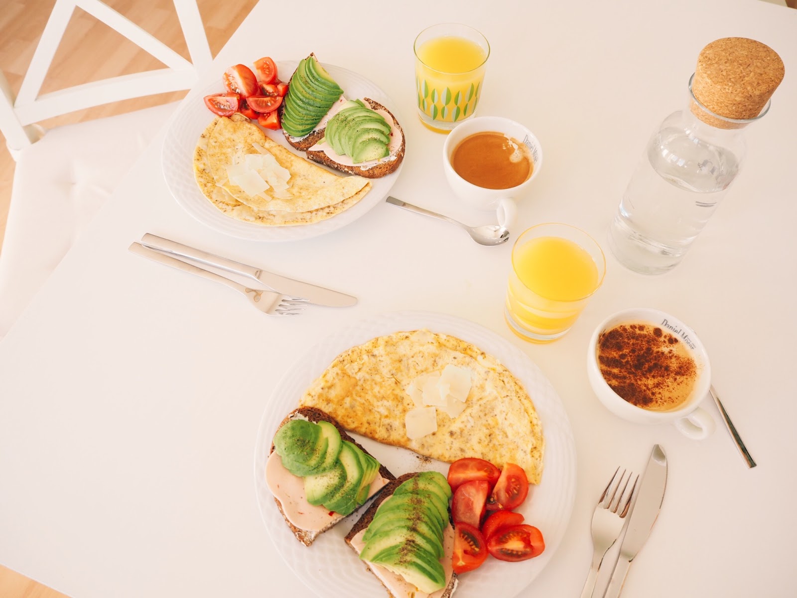 День начался с вкусного завтрака: омлет с пармезаном, хлеб с авокадо и вегетарианской ветчиной (мы решили попробовать не есть мясо какое то время), томаты и конечно кофе, у меня с корицей.