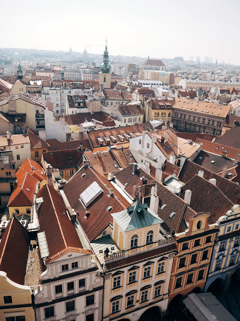 На второй день мы отправились с утра на другую смотровую площадку, что-бы получше рассмотреть Прагу сверху и со всех сторон. Эта смотровая площадка находится на ратуше астрономических часов, которые кстати в данный момент на ремонте. Вход платный 10€.