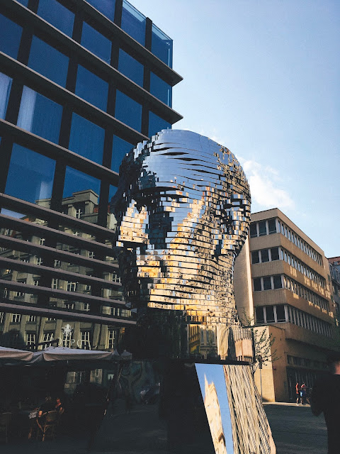 Практически первое, что я увидела по прибытии в чешскую столицу – это огромную голову Франца Кафки, который родился и также похоронен в Праге. Позже я прочитала, что не смотря на то, что почти все его произведения написаны на немецком языке, в Чехии известного соотечественника не забыли и построили в его память вот такой памятник современного искусства.