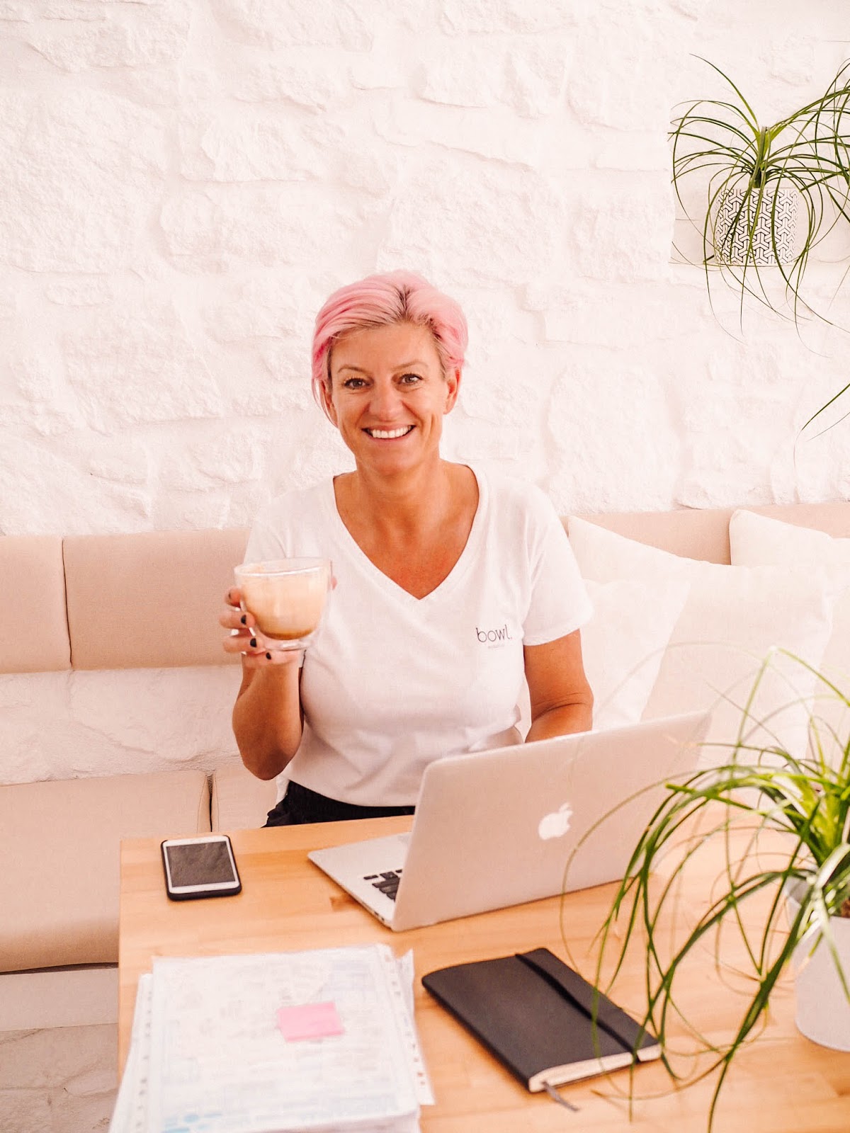 А теперь я хочу вас познакомить с владелицей BOWL Викторией, эта женщина просто невероятный источник позитива и энергии, когда Виктория брала у нас заказ и мы заметили, что она говорит на английском совершенно без акцента, что было бы странно для местного жителя Греции. Спросив ее об этом, Виктория рассказала, что когда-то она влюбилась в этот остров и два года назад переехала из Сиднея с мужем и открыла это замечательное место, в которое, как вы видете, они вложили душу, а еще ее розовые волосы точно совпадают с цветом эмблемы заведения!