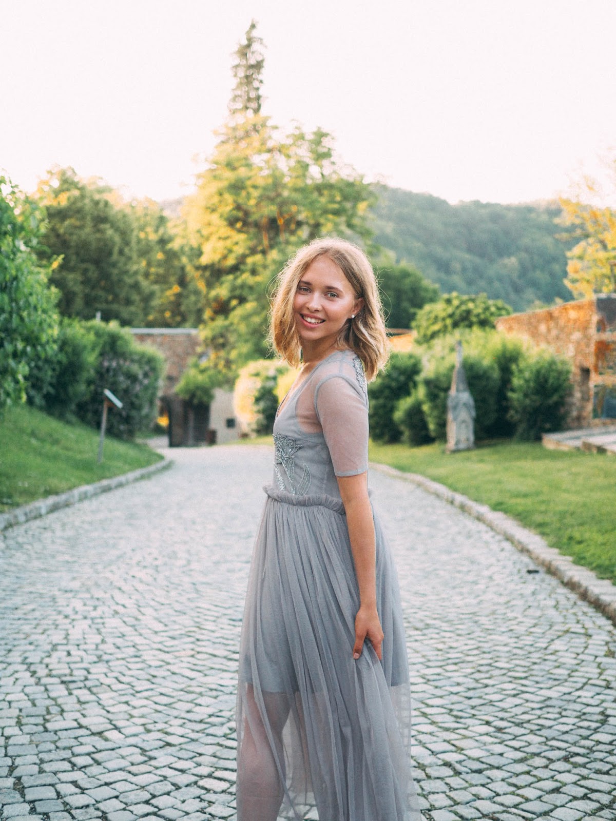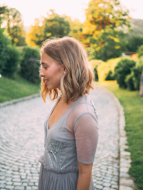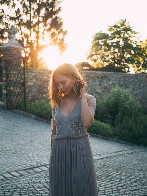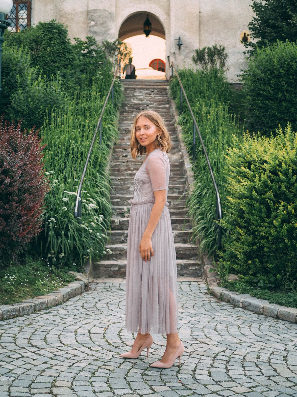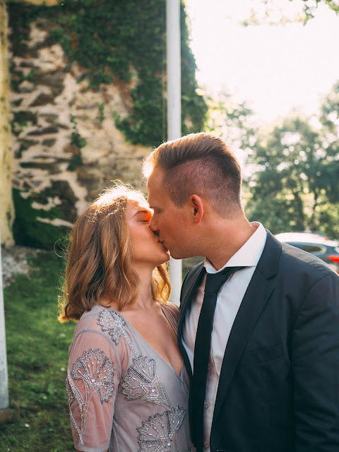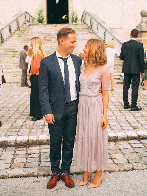 После мы все отправились в церковь неподалеку, где молодые венчались. Я впервые была на церемонии венчания в католической церкви и это было невероятно трогательно и красиво! Играла красивая музыка, отец невесты привел ее к алтарю, жених с невестой читали клятвы, обменивались кольцами, потом все вместе пели и поздравляли новобрачных, a на выходе маленькие девочки-ангелочки раскидывали лепестки роз. Позже мы все отправились в замок, где проходило уже само свадебное торжество, нас ждал праздничный ужин и много веселья 🙂