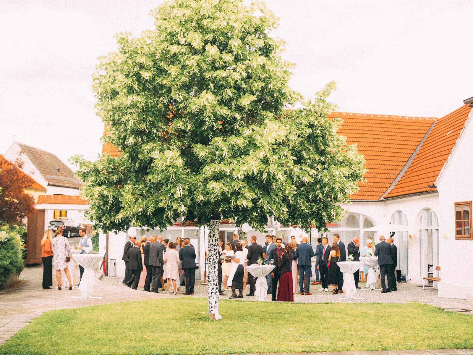 Был замечательный день и все мероприятие проходило в небольшом австрийском городке Локенхаус. Сначала все гости собрались на фуршет во дворике старого монастыря, знакомились друг с другом, общались, пили шампанское и ждали, когда выйдет невеста.
