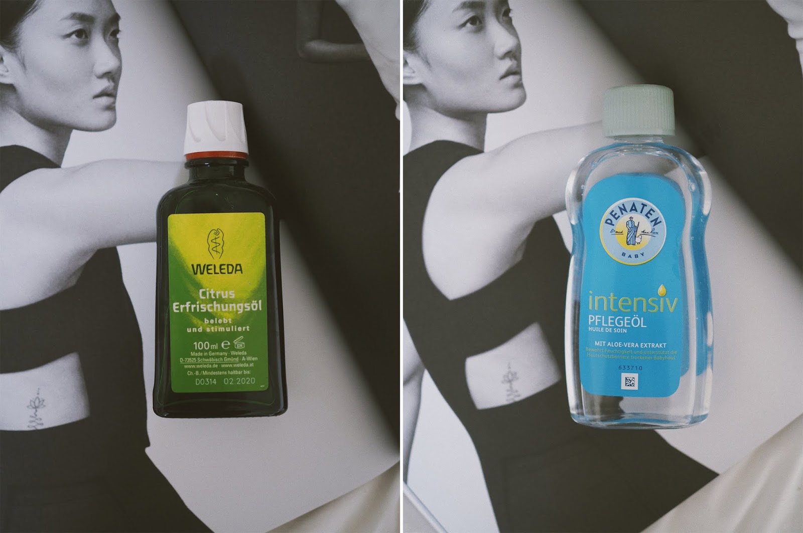 Для тела я также люблю использовать масла и на данный момент я часто наношу после душа цитрусовое масло от немецкого органического бренда Weleda, а также мне нравится детское масло Penaten, которое также отлично подходит для массажа, вкусно пахнет и стоит смешных денег.